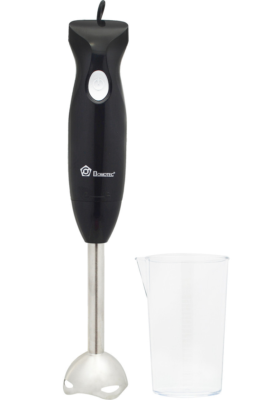 Блендер Domotec допоможе в ситуаціях, коли потрібно подрібнити або змішати, а така потреба виникає кожен день. Блендер використовується для змішування майонезу, соусів, дитячого харчування, для рубки цибулі, льоду, твердого сиру, м'яса, приготованих овочів та фруктів, коктейлів.Матеріал леза – нержавіюча сталь, а пластикова нога зручно знімається і легко миється. Простота його використання не може не радувати. Він компактний, легкий, його зручно тримати в руці.